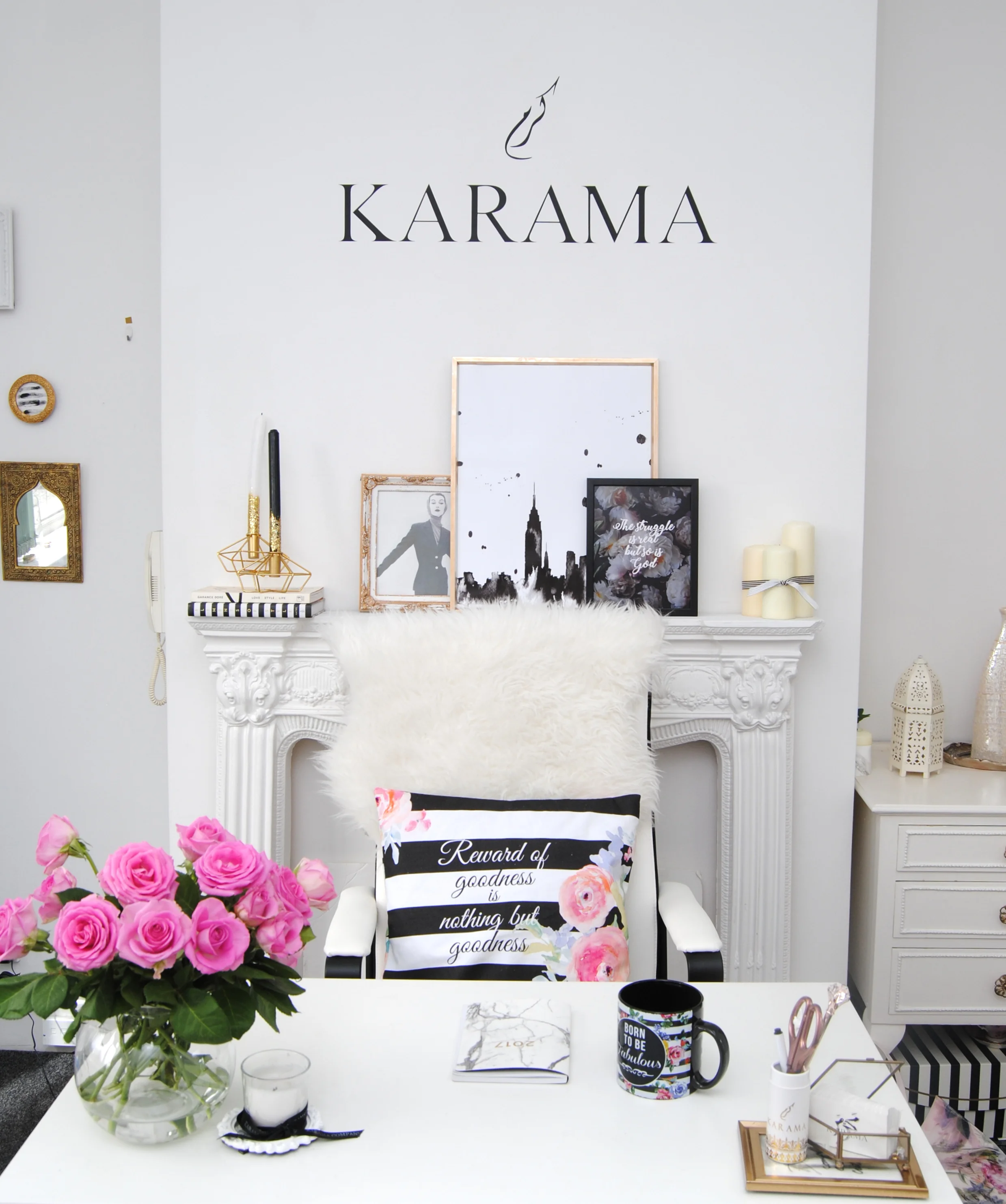 I feel so blessed to finally share our Karama Company Studio! This reveal is long overdue but I wanted to be able to share it with you lovely people once I was sure I had all the pieces I needed. Most of my pieces are DIY, some are from thrift shops and some from Ikea. If by the time you scroll down and you feel inspired to do a DIY, then that's great because I have a new spring decor DIY video for you!