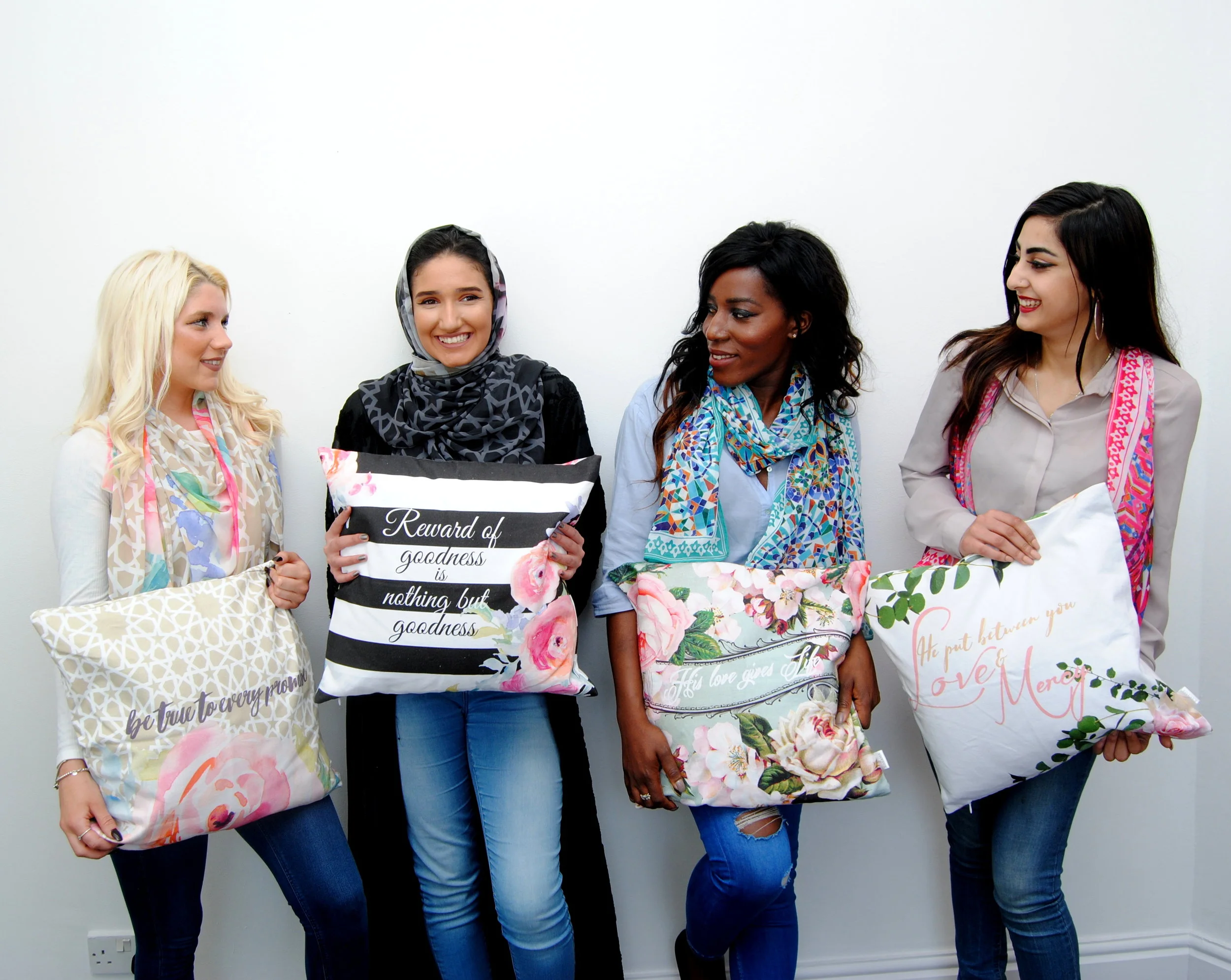 It all began with our trip to Morocco. I noticed how people from all over the world were in awe of the rhythmic flow of the curves and lines in the Arabesque designs in many of the Moroccan architecture. For a moment everyone put aside the great Islamic history these buildings hold and simply basked in the beauty. The Blissful Blooms collection was inspired by the blooming of flowers . Flowers bloom after a harsh winter, which serves as a reminder that there is ease after every hardship. By blending flowers and the arabesque designs together to remind those who are facing difficulties that there is hope. Over the years the media has portrayed Islam in a negative light. I envisioned creating something that can help us look past our differences and appreciate a beauty of art, regardless if the word "Islamic" is in front of it. Just pure art. To realize that we aren't as different as they make us to be, beauty and art can be appreciated by all. To see Karama products enjoyed by people from all different faiths and backgrounds reminds me that together we are one.