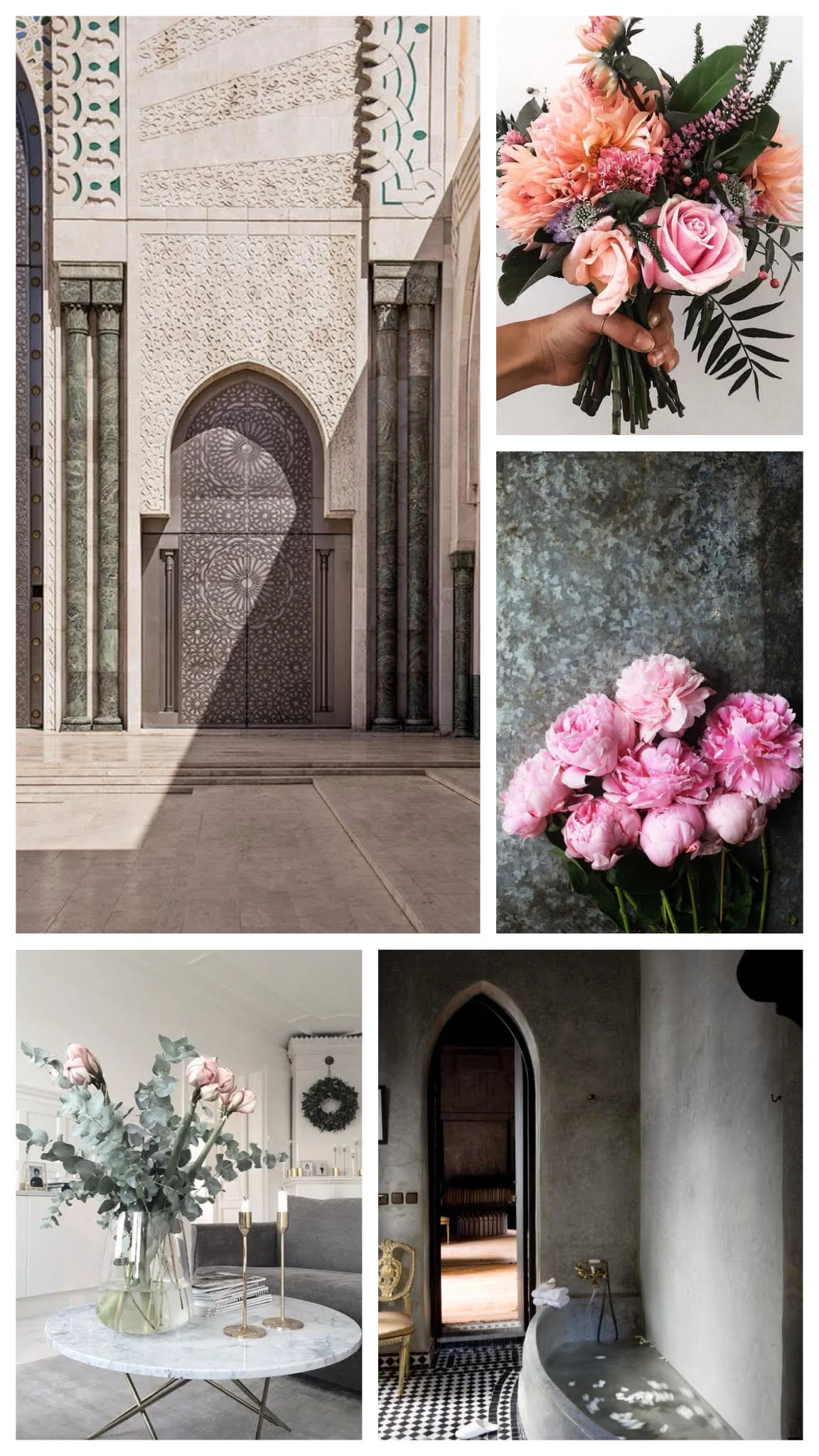 These are the pictures that inspired us to create the Moroccan Gardens Design. When designing this print, I imagined myself getting lost in a Moroccan secret garden and surrounded by the flowers I adore. It reminded me of the time I was in Marrakech, in search of the attractions. I was lost in the tight alleys with mopeds, donkeys, and people are rushing by. I got overwhelmed and finally found a place to rest. To my surprise, as I continued walking I found myself in a secret garden. All the noise suddenly disappeared and a sense of serenity covered my whole body. I had to create a piece that reminded me of this moment hence the birth of the Moroccan Gardens Design.